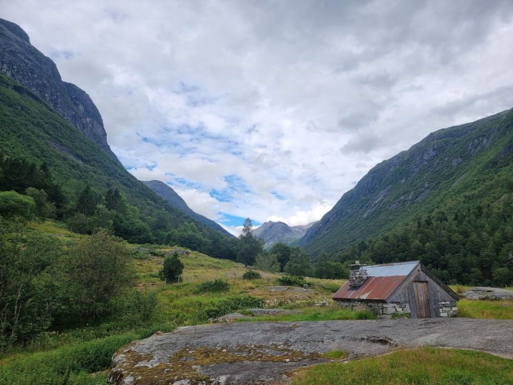Sigdestad fjellgård ligger idyllisk til på en fjellhylle 314 moh, med panoramautsikt over Oppstrynsvatnet omkranset av vakre tinder.